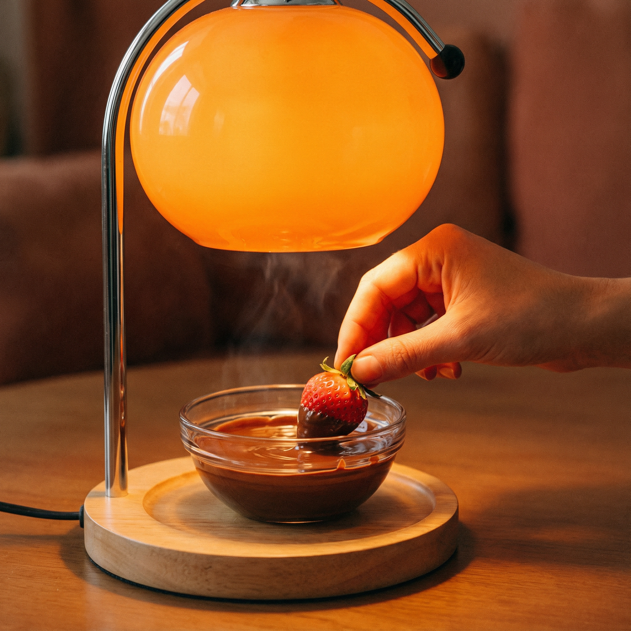 Forget the double boiler setup and constant stirring. Place a small bowl of chocolate (or cheese) on the wood, turn on the Meva lamp, and watch it melt to a perfect consistency in 5-10 minutes. The gentle, even heat keeps it smooth and warm without burning.